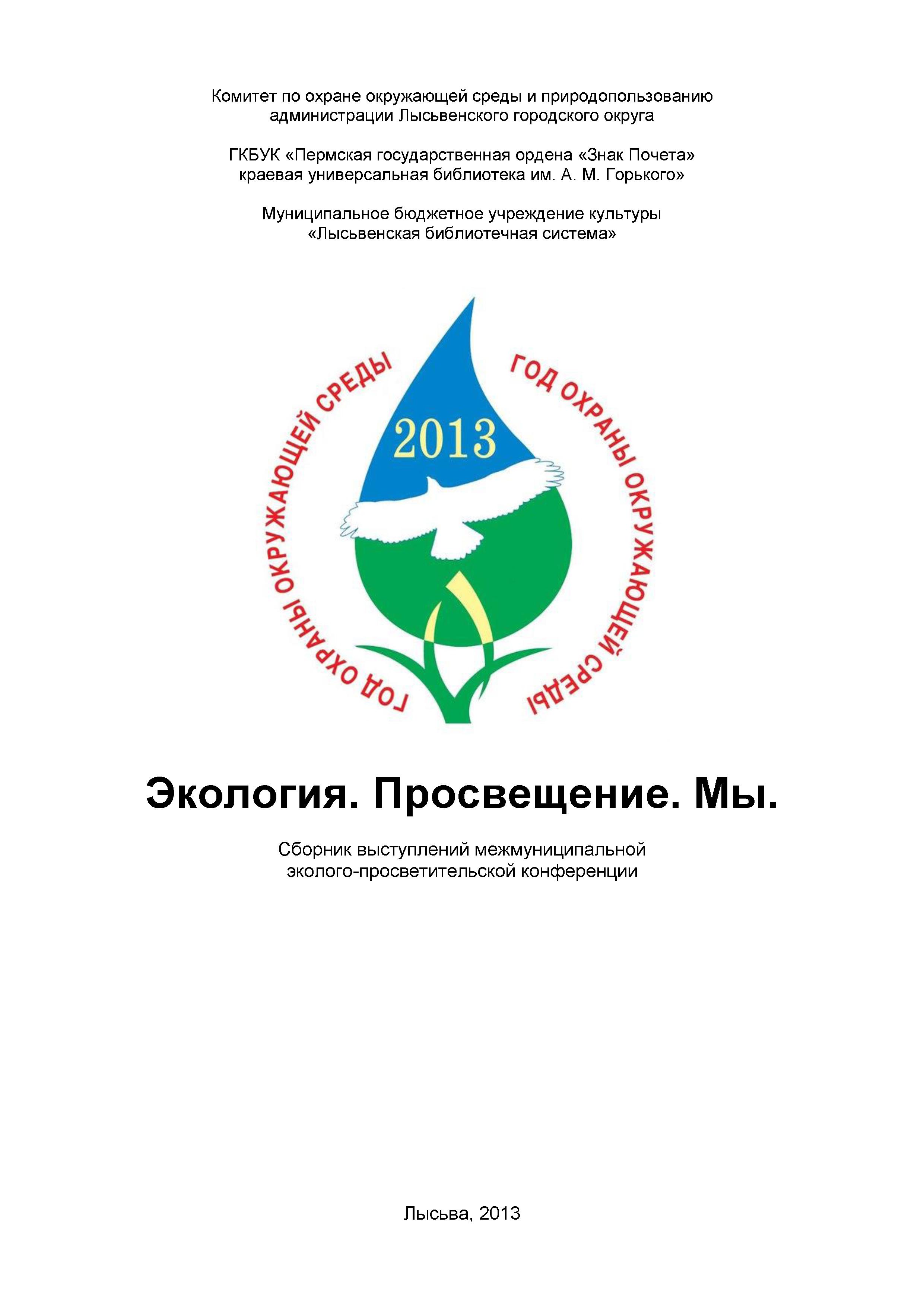 Экология. Просвещение. Мы. : сб. выступлений межмуницип. эколого-просветит. конф. / сост. Е. И. Завьялова. – Лысьва, [б.и.], 2013. - 48 с.