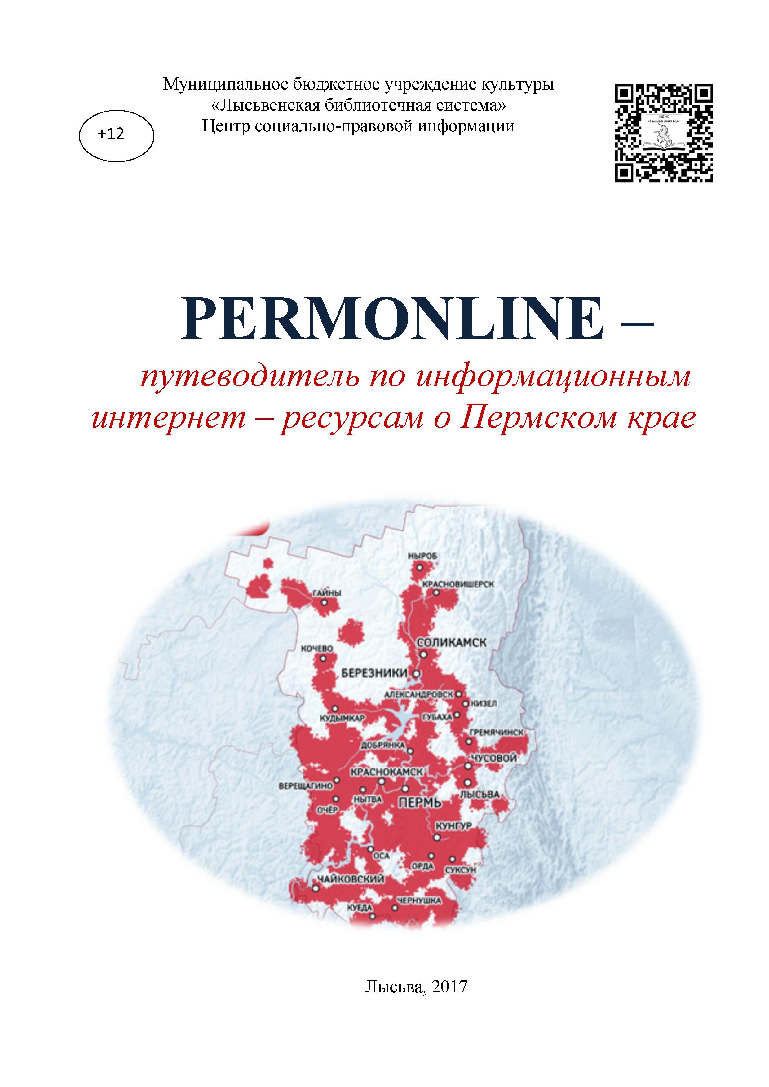 РERMONLINE – путеводитель по информационным интернет – ресурсам о Пермском крае / МБУК «Лысьвенская БС», Центр социально-правовой информации; сост. Е. Запятая. – Лысьва: [б.и.], 2017. - 8 с.